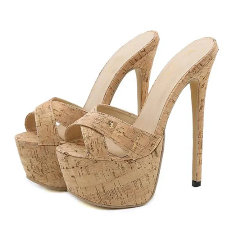 Aneikeh Summer Extreme Platform High Heels Black Leopard Print Rivet Slippers Ladies Sexy Slingback Sandals Mules Slides Shoes