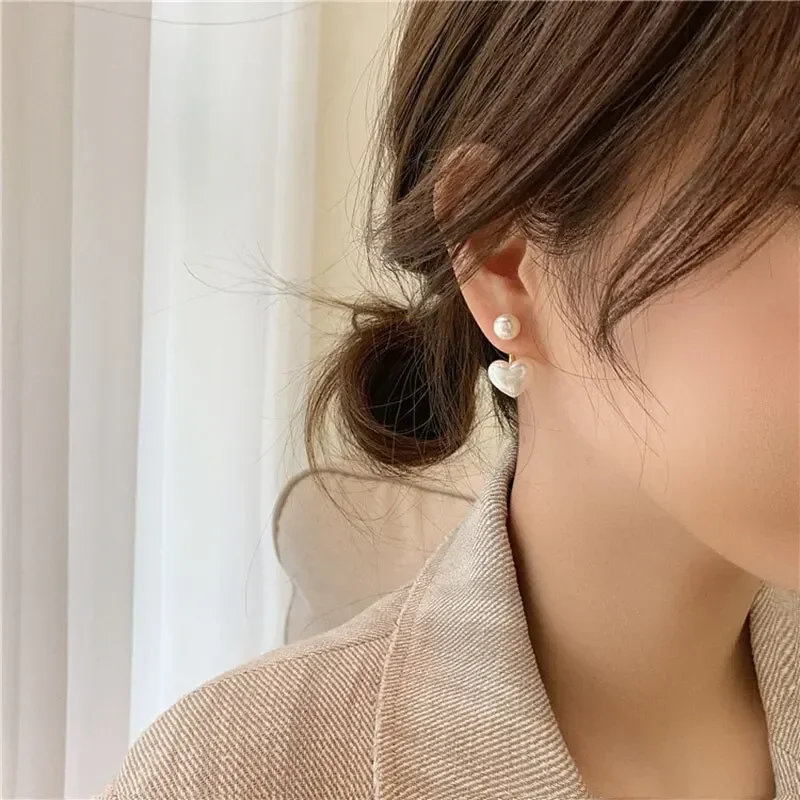 Imitation Pearl Heart Round Geometric Smooth Surface Dangle Earrings for Women Elegant Versatile Ear Fashion Jewelry Wholesale