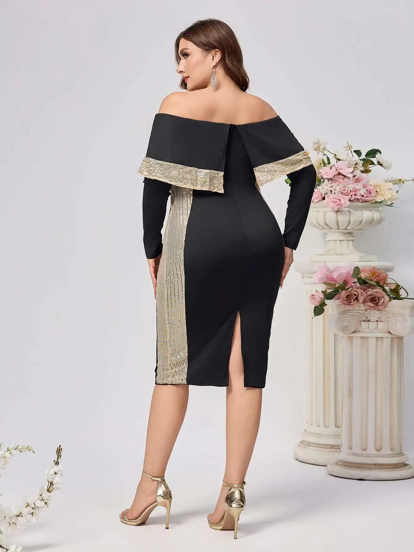 Size Large Women's New Fashion Style Elegant Off Shoulder Sequin Long Sleeved Slim Fit Hip Hugging Elegant Women's Dress Y2k