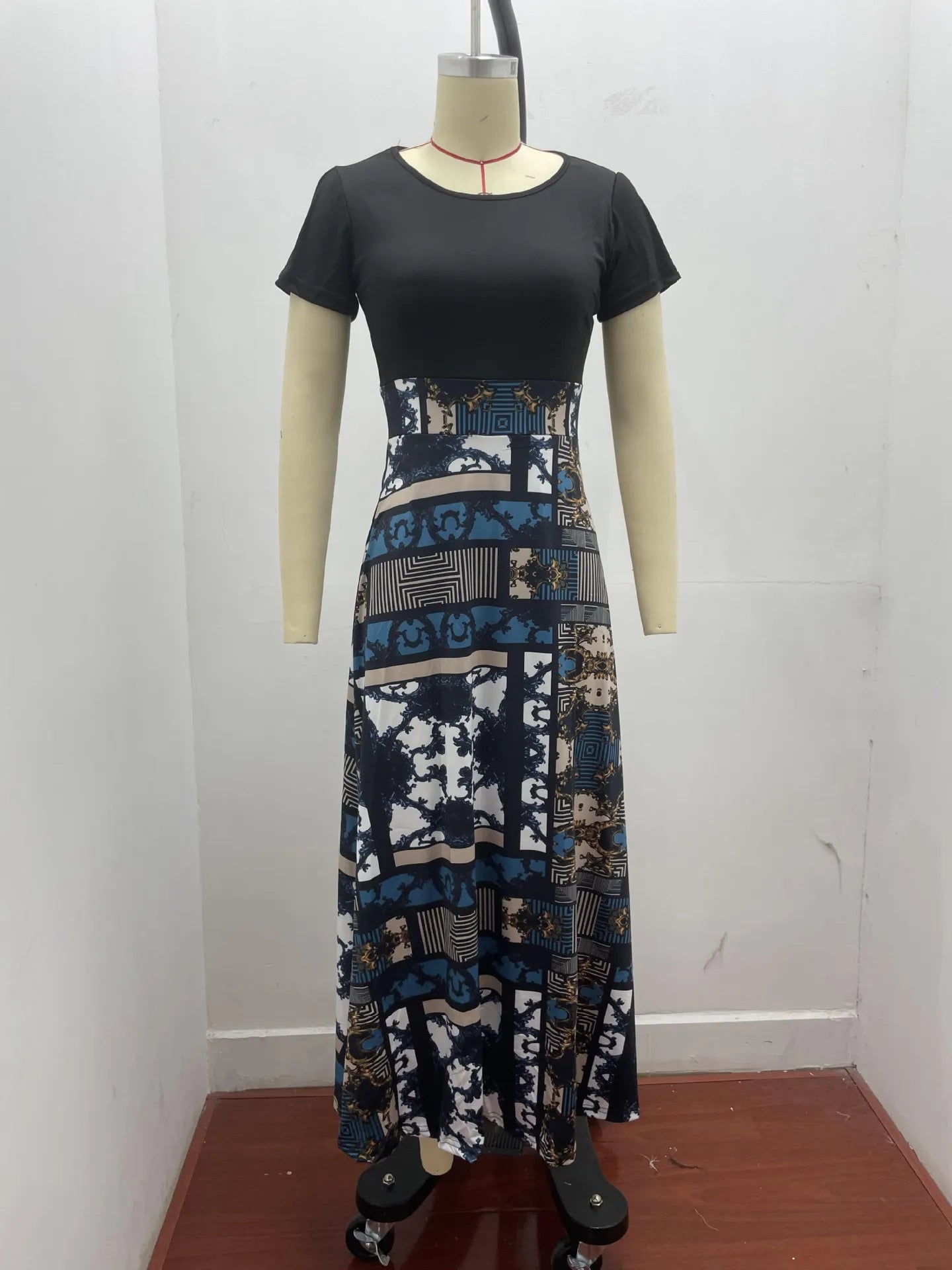 Summer Women's Maxi Vestido Casual Printing Short-Sleeved Round Neck Dress Robe Ropa De Mujer Night Club Sexy Outfits For femini