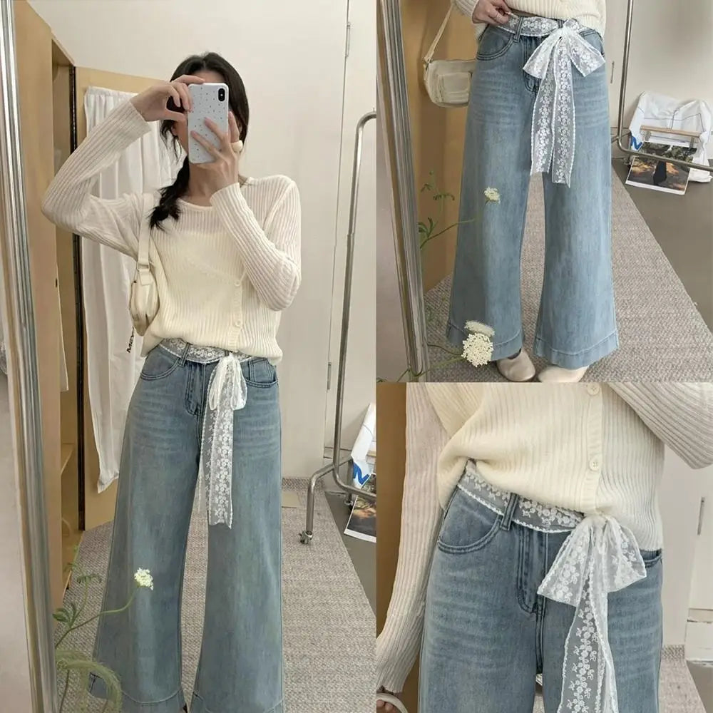 Unique Y2k Long Lace Waistband Floral Bow Lace Waist Belt Tie Up Thin Dress Jeans Belt Summer