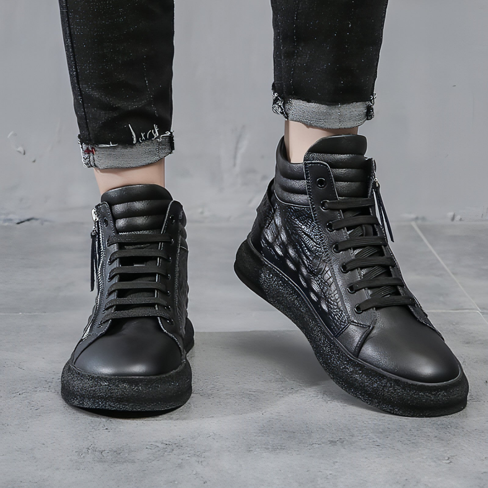 A sleek leather high-top designed for modern streetwear. Durable, breathable, and crafted with precision – perfect for bold steps in any direction.